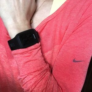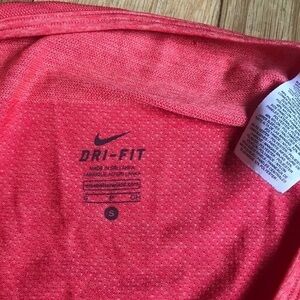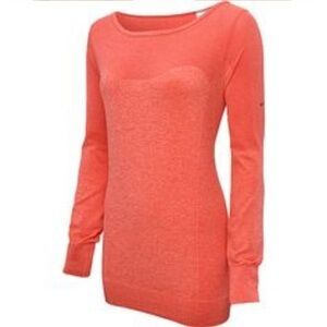 Nike Dri-Fit orange Epic Training Knit long sleeve crew top. Two tone orange / coral colored. Swoosh on right bicep. Breathable material. Great to wear during running, yoga, gym, sports, workout and pre- post- workout look.