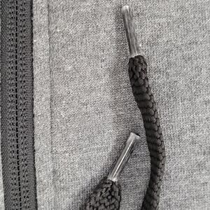 Stay active in style with this Nike Dri-Fit training hoodie! M/L cropped fit, gray zip-up with embroidered Swoosh logo—perfect for workouts or casual wear.