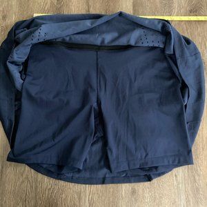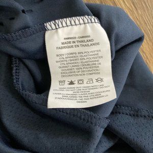 Soft knit fabric is quiet and stretchy. Pleats in the back are inset with mesh for extra breathability and added volume.