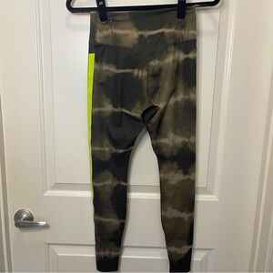 Stylish tie-dye leggings with a bold neon stripe. Ideal for workouts.