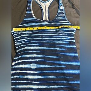 Blue and white tiger stripe Nike razor back tank- no signs of wear- EUC see approximate measurements in photos
