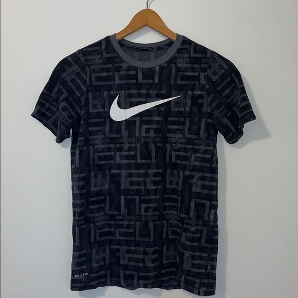 NIKE Elite Logo Youth Large Athletic Cut Short Sleeve Tee Dri-Fit Black Swoosh