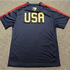 The jersey is a size small, making it a perfect fit for men. It is designed to be comfortable and easy to wear, with breathable materials that help keep you cool even in the heat of the game. With its unique design and high-quality construction, this jersey is the perfect choice for any fan of the USA soccer team who wants to show their support in style.