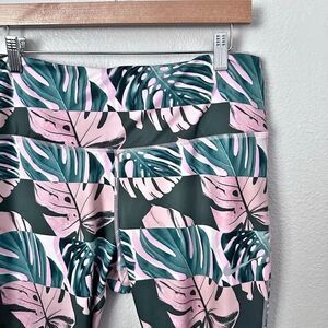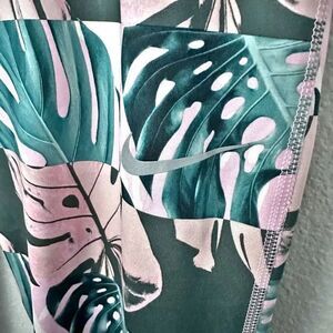 NIKE | Fast Crop Leggings Pink Green Leaf Print Tropical Jungle Plus | Size 1X