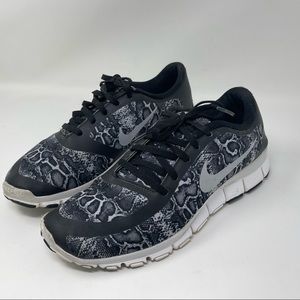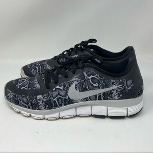 NIKE Free 5.0 V4 Black Gray Snake Print 695168-004 Running Shoes Womens
