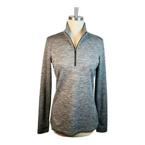 Nike Golf 1/4 Zip Long Sleeve Top, Dri-Fit Pullover, super lightweight, moisture management, temperature regulation, gray with black accents, stretchy, women's size medium.