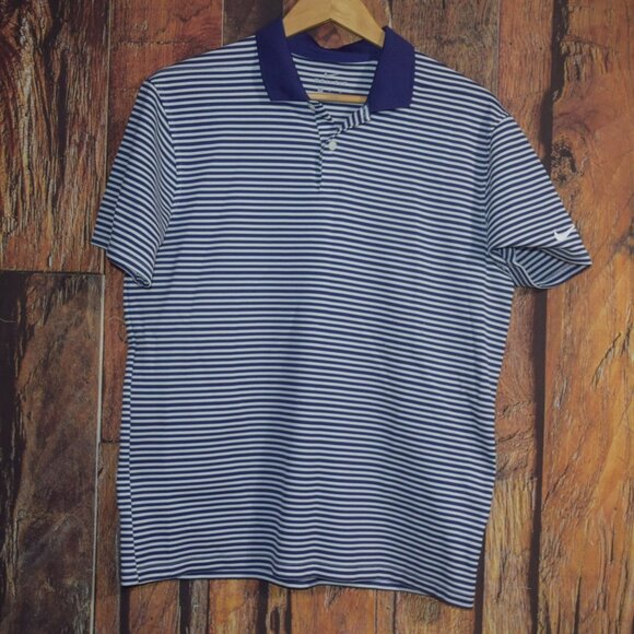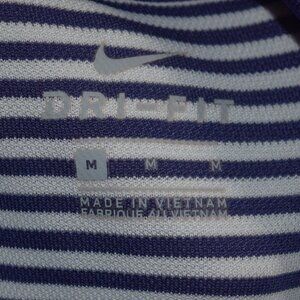 NIKE GOLF DRI-FIT Men's Sz M Purple Striped Polo Shirt - EXCELLENT CONDITION except for one small hole in the back collar (from the ink tag) shown in the final picture. This cannot be seen when worn