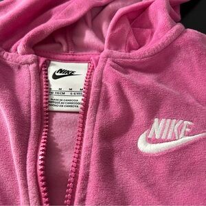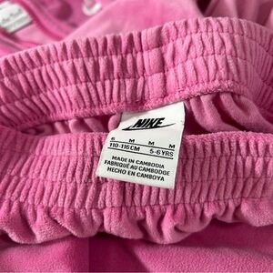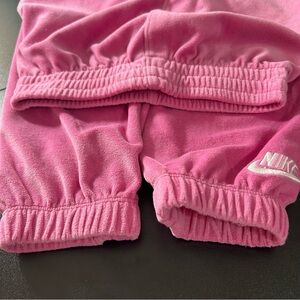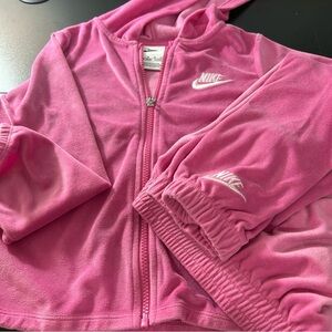 NIKE Girls Velour Set Pink Jacket Full Zip Hood Pants Cinched Ankles Size M 5-6