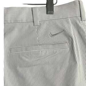 NIKE Golf Men Shorts Size 34 Gray White Pin Stripe Flat Front Casual Performance