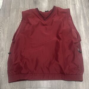 NIKE Golf V-Neck Men's LG Pull Over Vest Windbreaker Fit Zip Pockets Red