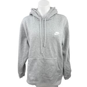 NIKE Gray Heather Sportswear Club Fleece Embroidered Pullover Hoodie Top Sz L