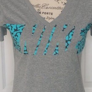NIKE Gray T-Shirt, Teal Animal Print, Workout Shirt, Exercise Top Dri-Fit