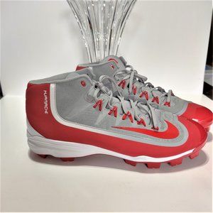 These Nike Huarache 2kfilth pro mid baseball cleats are NWOT. They are wolf grey/university red/white in color. They are size men's 16 and in Excellent condition!