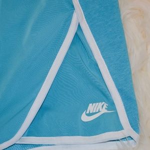 Nike heathered blue court athletic/tennis skort. Layered skirted front and short back. Elastic smocked waist. 2 pockets. Partially lined in mesh for breathability. New with tag / NWT.