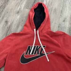 NIKE Hoodie Mens Small Soft Red Logo Graphic Pullover Sweatshirt Cotton Blend