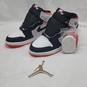 HELLO, WELCOME TO MY CLOSET. NIKE AIR JORDAN 1 RETRO HIGH OG GS ELECTRO ORANGE SNEAKERS ■YOUTH SIZE 5■ ■WOMEN'S SIZE 6.5■ THESE ARE NEW NO FLAWS, COME WITH THE BOX, THREE PAIRS OF SHOE LACES, ORANGE, WHITE , BLACK, NOW THE SHOE COLORWAY IS BLACK ELECTRO ORANGE/ WHITE, THEY ARE HIGH TOPS ,LEATHER, RUBBER SOLES. NIKE SWOOSH,COMFORTABLE INSOLES, READY FOR WHATEVER STYLE YOU THROW AT THEM. AWESOME SNEAKERS.