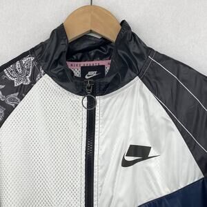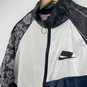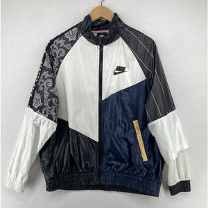 NIKE Jacket Womens S NSW Sportswear Woven Track Loose Fit Patchwork White Black
