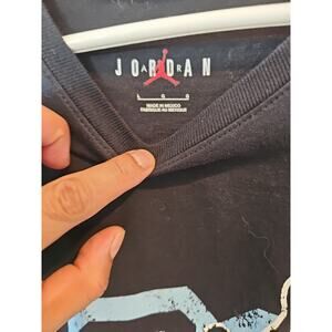 The NIKE Jordan Flight Essentials Short-Sleeve Black Men's T-shirt is a stylish and comfortable piece of clothing for men. Made of cotton, this regular fit t-shirt features a crew neck and short sleeves, perfect for all seasons. The iconic Michael Jordan character and Jordan brand add a touch of sports-themed flair to this classic black t-shirt, making it a versatile and fashionable addition to any man's wardrobe.