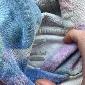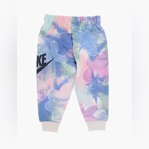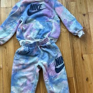 Colorful Nike set with pastel hues. Includes sweatshirt and joggers. Perfect for casual wear.