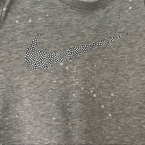 NIKE Kids Boys Swoosh AOP All Over Print Speckled Grey Tee AO8172-063 Medium. It is in Excellent condition with no holes, rips, or stains. Bundle with other items from my closet for the best deal!