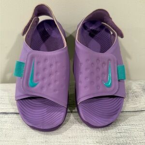 Comfortable and stylish kids slide sandals in vibrant purple with a teal accent. Perfect for everyday wear.