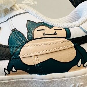 NIKE Kid's Unisex White/Teal Air Force 1's Custom Pokemon Snorlax Sneakers NWB
