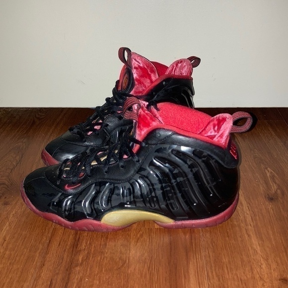With a vampire-inspired look for the ultimate trick-or-treating sneaker. You can get a full look at the frightening Foams here today, which feature a glossy black Foamposite shell with printed with matte black bats, red velvet on the interior as a reference to the inside of Dracula’s coffin, and vampire teeth embroidered on each heel. Wooden stake graphics on each tongue, gold accents, and blood-red outsoles finish off the bloodsucking theme.