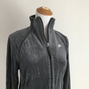NIKE Long Sleeve Gray Velvet/Velour Perforation Detail Collared Track Jacket