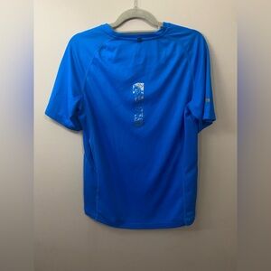 Constructed with Nike's innovative Dri-Fit technology, this shirt is designed to keep you dry and comfortable by wicking away sweat during exercise. The medium fabric wash maintains the shirt's color and quality after multiple washes. Whether you're hitting the pavement or the treadmill, this activewear essential, made from premium polyester, is tailored for the active man seeking functionality and style.in good condition