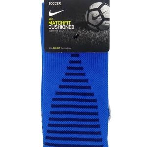 Here is a brand new pair of NIKE MatchFit Cushioned Dri-Fit OTC Socks in a women's size small (4-6). Socks are blue in color. The Socks are designed with Dri-FIT fabric and arch compression. The Dri-FIT fabric helps keep you dry and comfortable also fabric construction feels smooth against your skin. Reinforced heel and toe enhance durability plus arch compression for a snug, supportive fit. FABRIC: (78% nylon / 14% cotton / 4% polyester / 4% spandex).