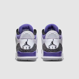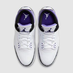 The Air Jordan 3 Retro Dark Iris is a high-top sneaker and comes in a white/black/Cement Grey/purple colorway.