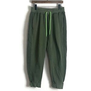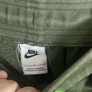 Condition: Pre-Owned Great Pre-Owned Condition (see pics for details) Features: Style Profile: classic casual Nike Air Fleece Jogger drawstring panelled construction Flaws: No Holes, stains, or tears Please see photos for measurements (in inches) We are happy to answer your questions Elastic Waist Drawstring All Season Solid Green Made in Cambodia Machine Wash Size: Mens L Fast Shipping