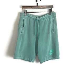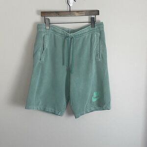 NIKE Mens Green HBR Washed Sweat Shorts Size M Drawstring Basketball Logo