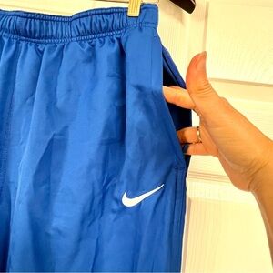NIKE Mens Track PANTS Royal BLUE Polyester White Stripe Drawstring Ankle.
