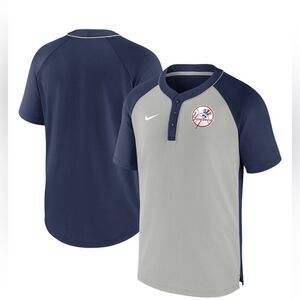 NIKE Men's New York Yankees Navy Silver Plate Performance Henley Raglan NWT XL