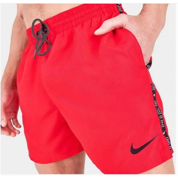 MEN'S NIKE SWOOSH LOGO TAPED 5- INCH VOLLEY SWIM SHORTS crimson red Large. New with tags. Retails $60