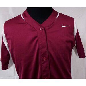 Brand & Description NIKE Mens/Youth XL Maroon White Short Sleeve Baseball Button Up Logo Jersey