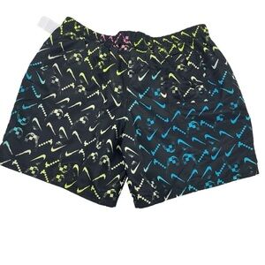 NIKE Mens size XXL All Over Logo Black Swim Trunks Shorts Swimwear lined 2XL NWT