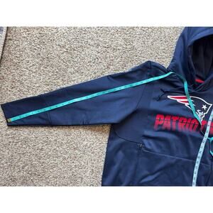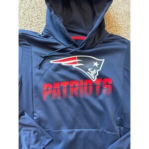 NIKE Dri-Fit Onfield NFL New England Patriots Football Men's Sweatshirt/fleece/pullover size Large. Zip up front pocket, with kangaroo pouch. Fleece on the inside, smooth finish on the outside.