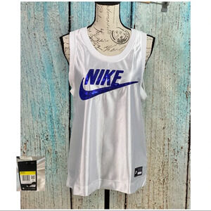 NIKE NWT White Blue Sportswear Sequin Logo Tank