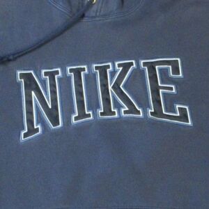 NIKE Navy Blue Spellout VINTAGE Hoodie Sz M Grey Silver Tag Sweatshirt 90s Y2K