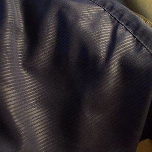 Wonderful pair of men's Nike swim trunks, size XL. Navy blue with a subtle tonal horizontal linear design over camouflage pattern. The pattern is also dark blue, so it gives this bathing suit a little something extra, especially when the light hits it. Aqua blue Nike swoosh embroidered on the lower left leg. This swimsuit features inset side pockets, an elastic waist with front tie, and brief-style mesh liner. Gently used condition.
