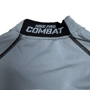 NIKE PRO COMBAT PULLOVER HYPERWARM DRI FIT MAX 1/4 ZIP MENS L GRAY BLACK FITTED
