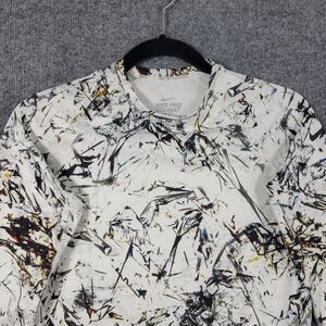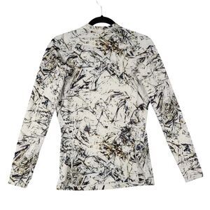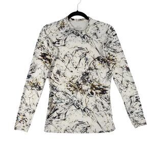 NIKE PRO COMBAT White Abstract Winter Camo Fitted Dri Fit Top SIZE MEDIUM