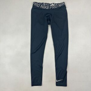 These NIKE PRO Compression Dri-Fit Max Legging Pants are a must-have for any active man's wardrobe. With a solid pattern, pull-on closure, and skinny leg style, these pants are perfect for travel, activewear, party/cocktail, casual, and workwear occasions. The pants are made of a comfortable polyester and spandex material that is machine washable and comes in a stylish blue color. These pants are part of the Nike Pro product line and feature compression technology to provide extra support during workouts. The pants have a 28.5-inch inseam and a waist size of 29 inches, making them a great fit for men in size M. Whether it's winter, summer, fall, or spring, these leggings are perfect for any season.
