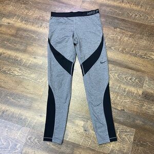 NIKE PRO Hyperwarm compression Leggings Womens Size Large Gray Black activewear
