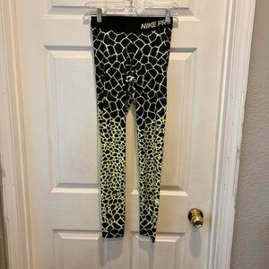 NIKE PRO Neon Green Pro Engineered Dri-Fit Giraffe Print Leggings Size Small