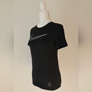 Sleek black tee with iconic white Nike swoosh. Short sleeves for comfort. Ideal for casual wear.