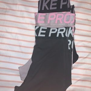 Selling three Nike Pro tights. All XS ( I am 5’1 weigh 135ish, and my waist is 28in) Selling all three for $40, good condition, they’re really cute. Can also sell each individually for $15 each.