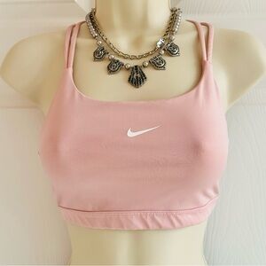 Stylish Nike sports bra in a soft pink palette featuring a unique crisscross back.